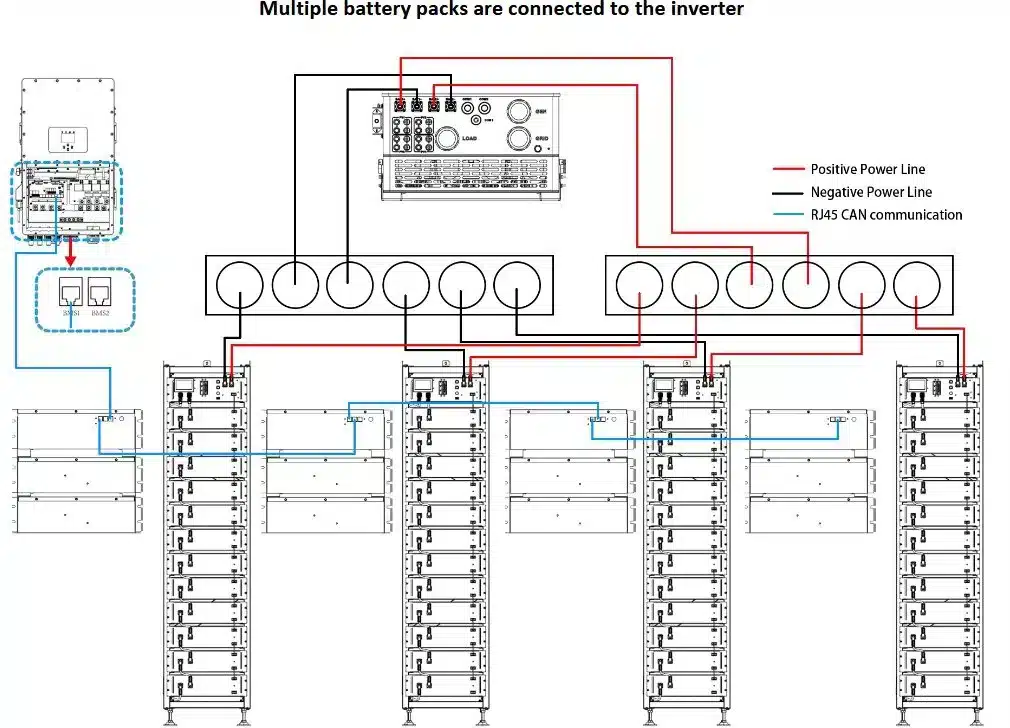 Podporuje zapojenie 5 až 17 batérií v sérii s kapacitou až 87,04 kWh a zároveň umožňuje paralelné prepojenie viacerých BMS jednotiek (až 16 stackov), čím vytvára flexibilné a škálovateľné úložisko energie pre domácnosti aj komerčné aplikácie.