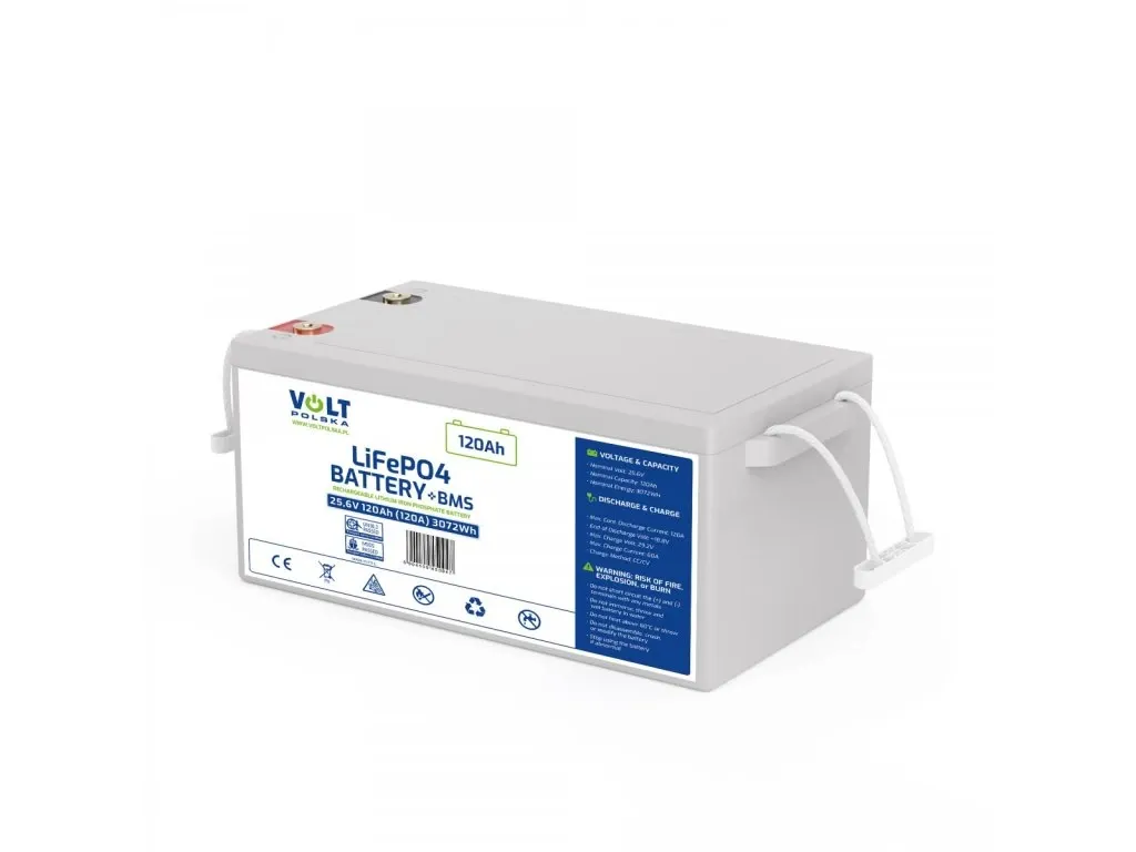 Tento LiFePO4 akumulátor od Volt s kapacitou 120Ah a napätím 25,6V je tou správnou voľbou. Vďaka integrovanému systému BMS (Battery Management System) je zaručená bezpečná prevádzka a dlhá životnosť.