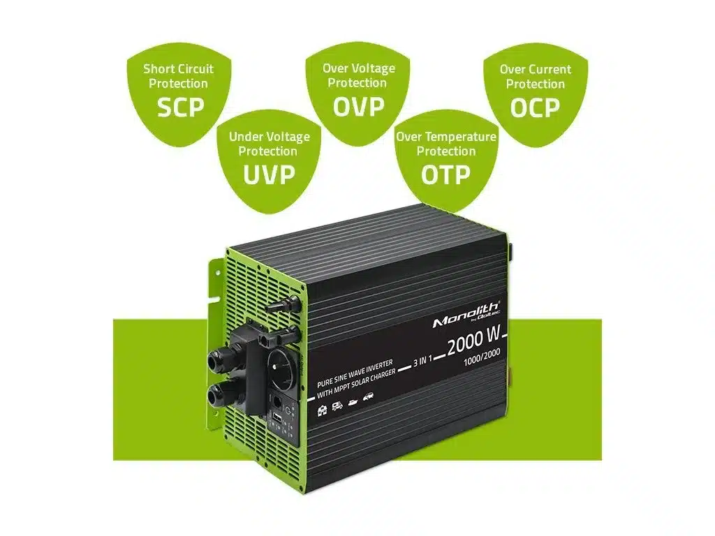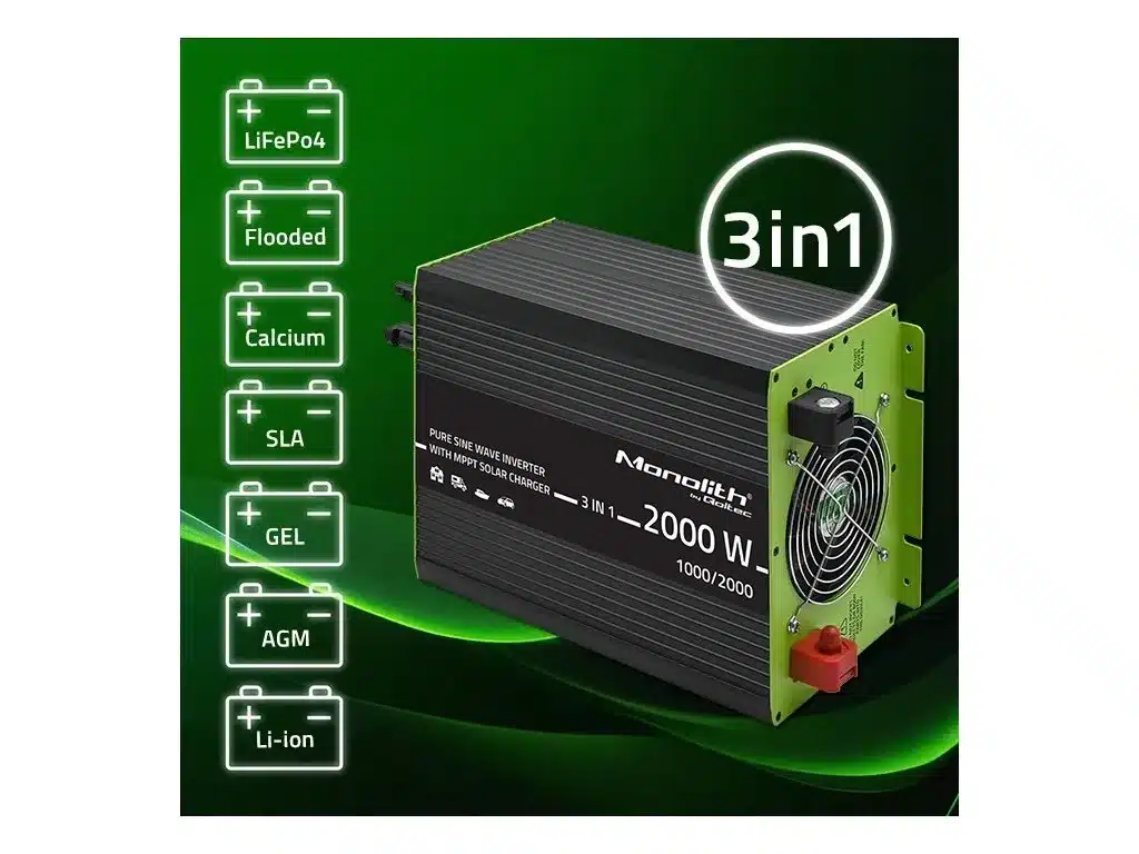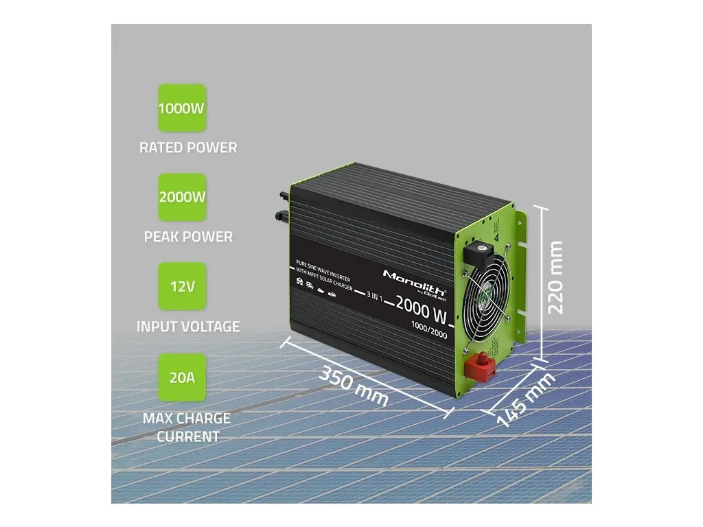 Menič generuje čistú sínusovú vlnu, ktorá zaručuje stabilné a bezpečné napájanie citlivých elektronických zariadení . Maximálny nabíjací prúd 40 A zo solárnych panelov zaisťuje rýchle a efektívne nabíjanie batérie. Zariadenie je vybavené konektormi MC4 pre jednoduchú a bezpečnú integráciu so solárnymi panelmi a USB portami (5 V / 2,1 A) na nabíjanie mobilných zariadení. Vďaka pokročilým funkciám a spoľahlivému výkonu je nabíjačka Monolith 1000 W ideálnou voľbou pre systémy mimo siete, záložné napájanie a optimalizáciu solárnej energie.