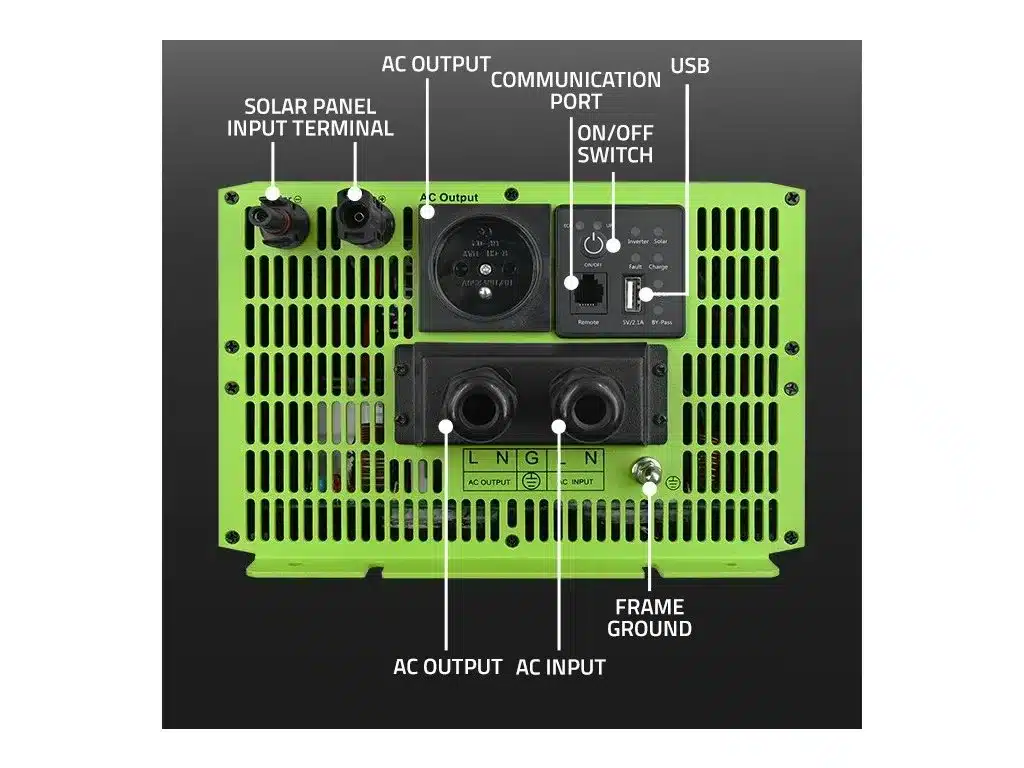 Kompaktný 1000 W solárny menič s čistou sínusovkou kombinuje AC nabíjanie 10A, MPPT solárne nabíjanie 40A a automatické prepínanie zdroja (ATS). Ponúka režim UPS pre bezvýpadkové napájanie – pri výpadku siete sa okamžite prepne na batériu a zároveň ju dokáže nabíjať zo 230 V. K dispozícii je aj úsporný režim ECO. Menič umožňuje pripojenie solárnych panelov a efektívne využitie ich výkonu vďaka MPPT regulácii.