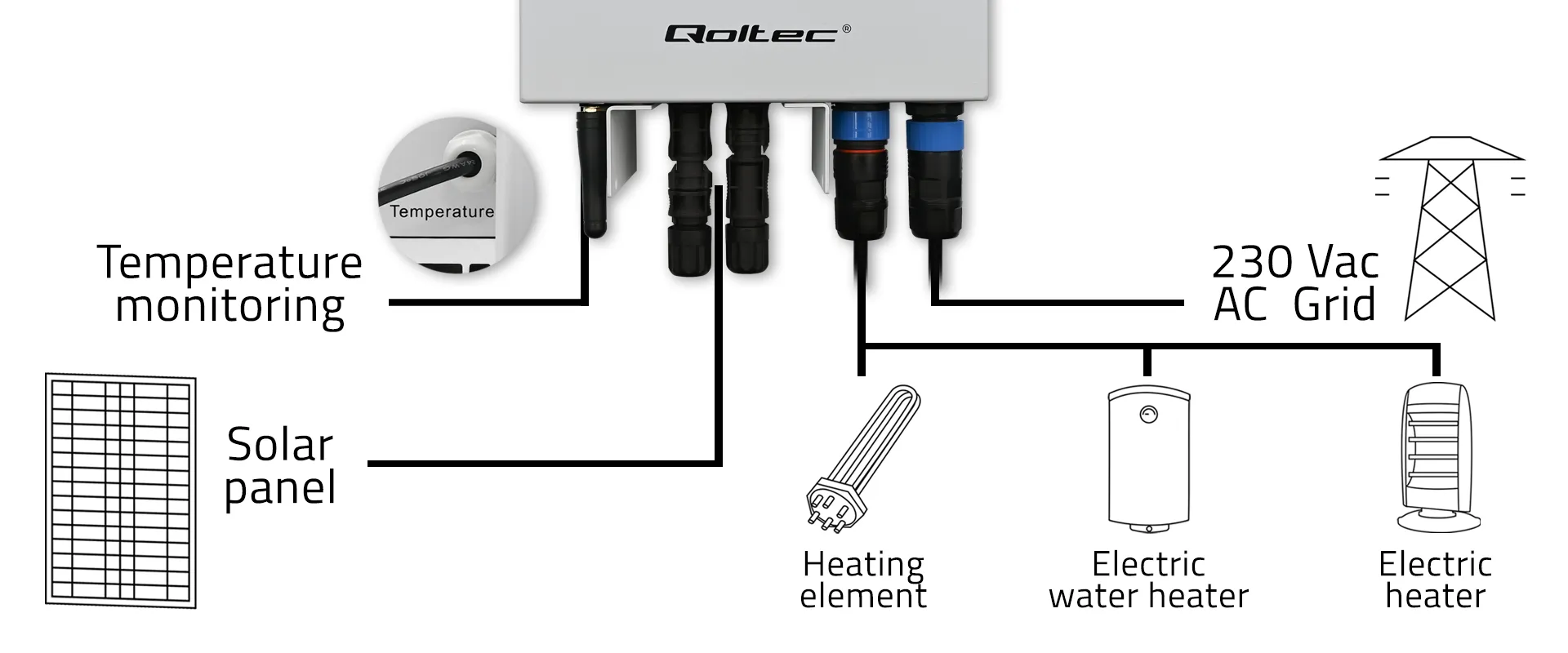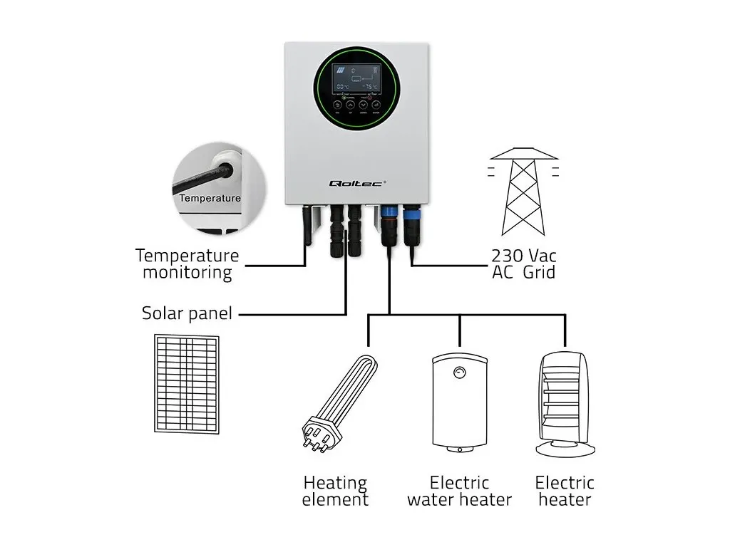 Menič na ohrev bojlera Eco Solar Boost MPPT, Wifi, 3kW, Qoltec