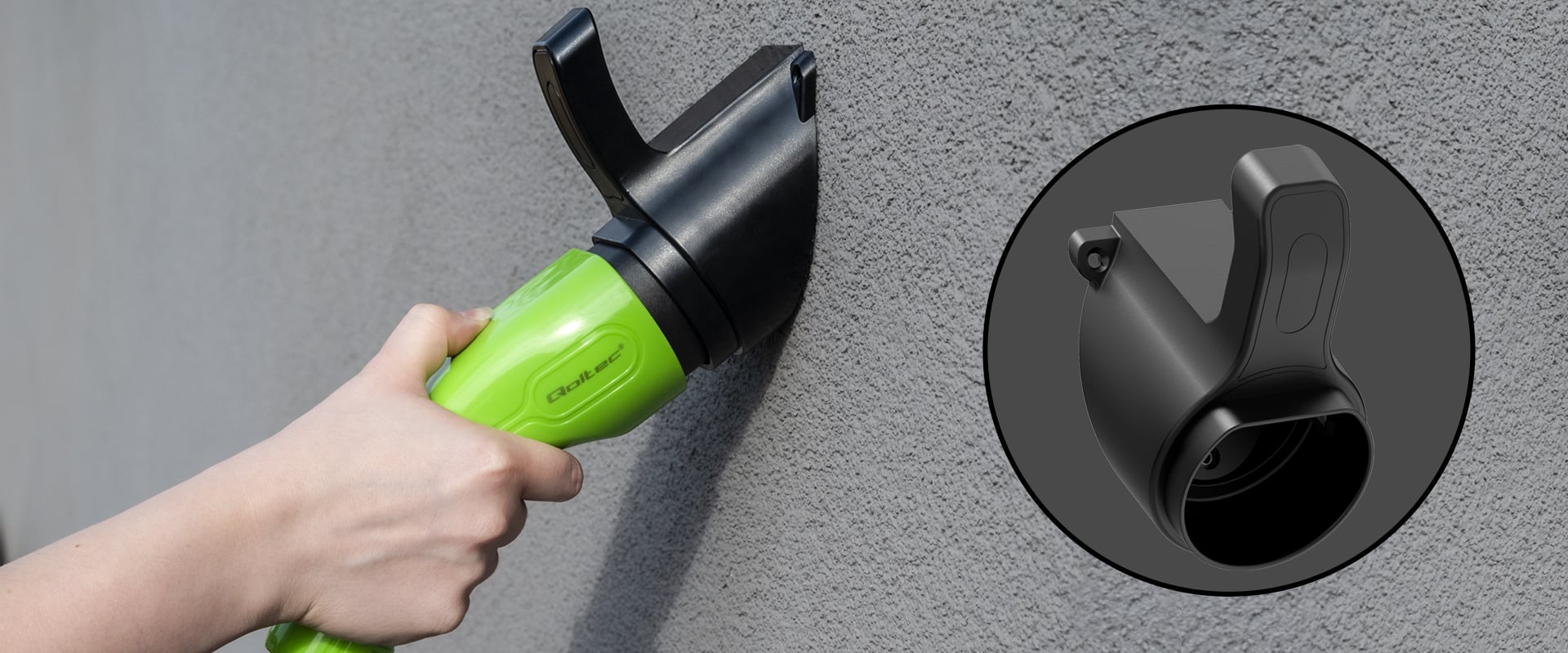 Náhradnú hubicu nabíjačky je možné pohodlne namontovať na stenu, čo poskytuje jednoduchý prístup a šetrí miesto, najmä v stiesnených priestoroch. Nástenný držiak stabilizuje kábel a hubicu a chráni ich pred náhodným poškodením a znečistením. Nástenná montáž umožňuje používateľom usporiadať nabíjaciu stanicu, čím sa zlepšuje estetika a funkčnosť nabíjacích priestorov v domácich garážach aj na komerčných parkoviskách.
