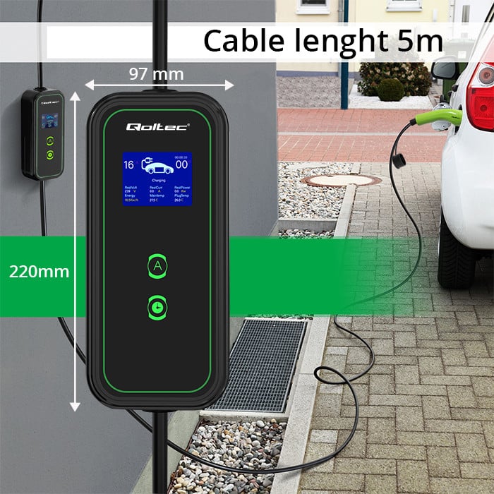 Nabíjačka má konektor typu 2 , ktorý je v súčasnosti oficiálnou normou Európskej únie a nabíja elektromobily vybavené príslušnou nabíjacou zásuvkou. Konektor typu 2 má 7 pinov, z toho 3 alebo 5 pinov je určených na nabíjanie a 2 na komunikáciu medzi stanicou a autom . Kompatibilné s väčšinou elektromobilov predávaných v Európe. Nabíjačka Qoltec podporuje štyri prúdové režimy: 8A, 10A, 13A a 16A . Je vhodné dodať, že konektor typu 2 je určený pre elektromobily s nabíjacím výkonom vyšším ako 3kW .