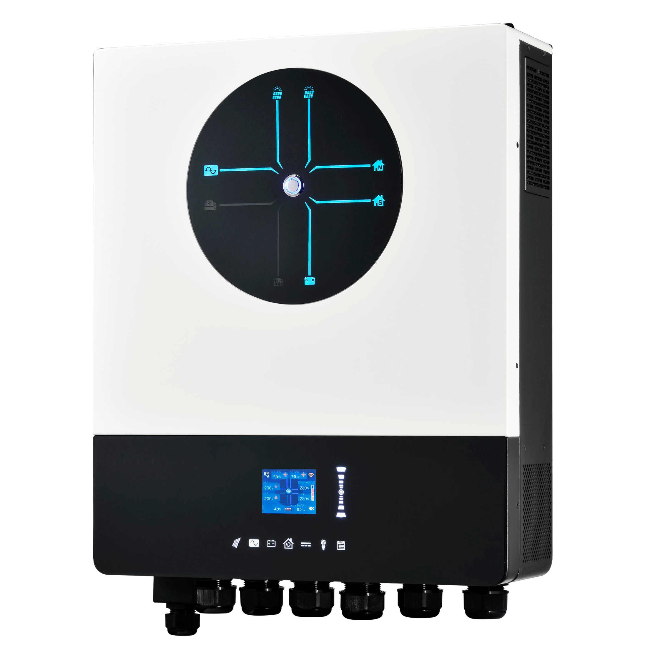 Výkonný ostrovný menič Voltronic Axpert Ultra 11K s maximálnym výkonom 12kW. Ponúka paralelnú prevádzku až so 6 jednotkami, vstavané Wi-Fi pre mobilné monitorovanie, podporu pre USB On-the-Go funkciu a pripojenie pre BMS.