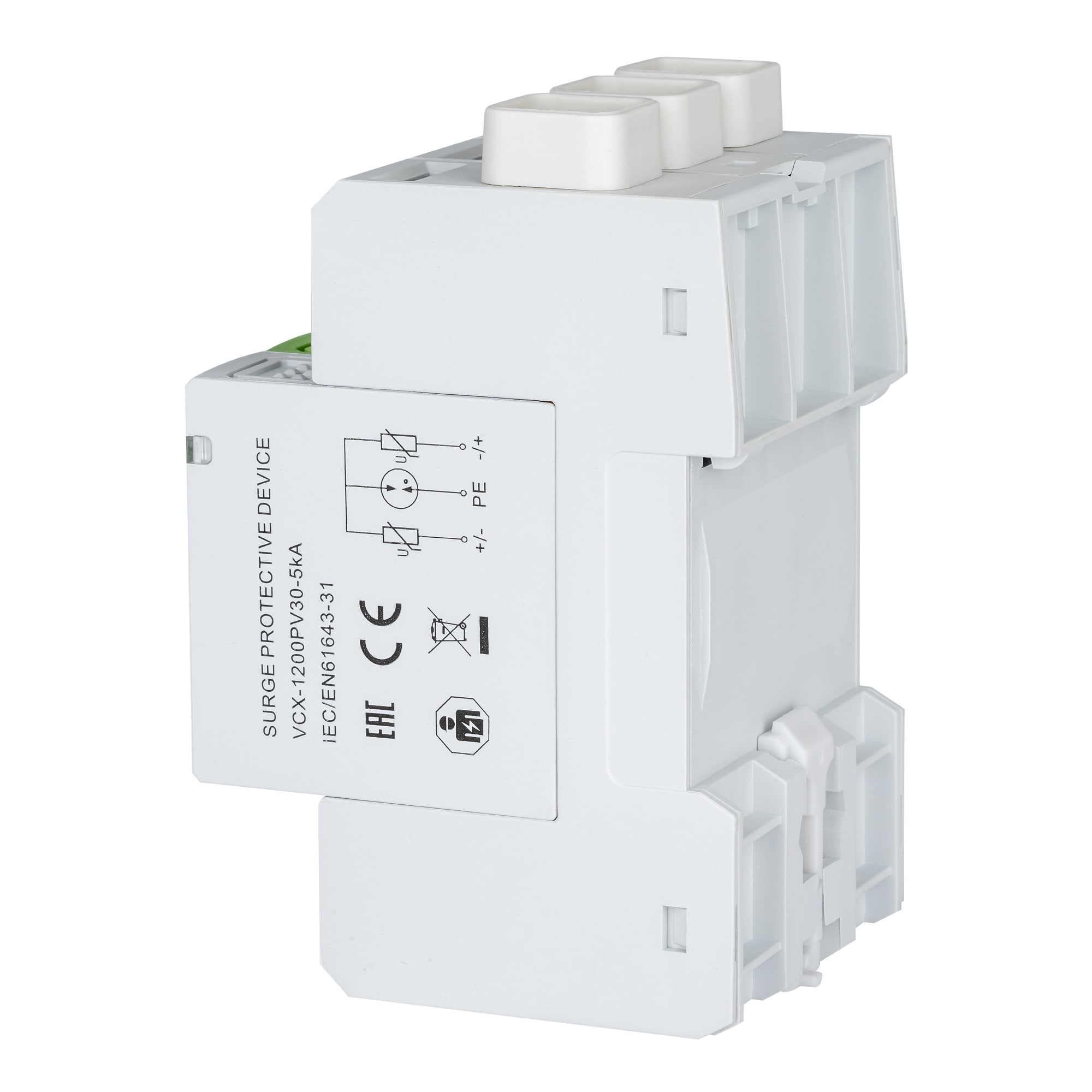 Modulárne prepäťové ochrany VCX-B+C-DC triedy T1T2 sú určené na ochranu fotovoltaických zariadení. Sú vybavené vizuálnym indikátorom prevádzky. Vďaka použitiu úplne nového varistora sa napätie Ucpv zvýšilo na 1200 V DC.
