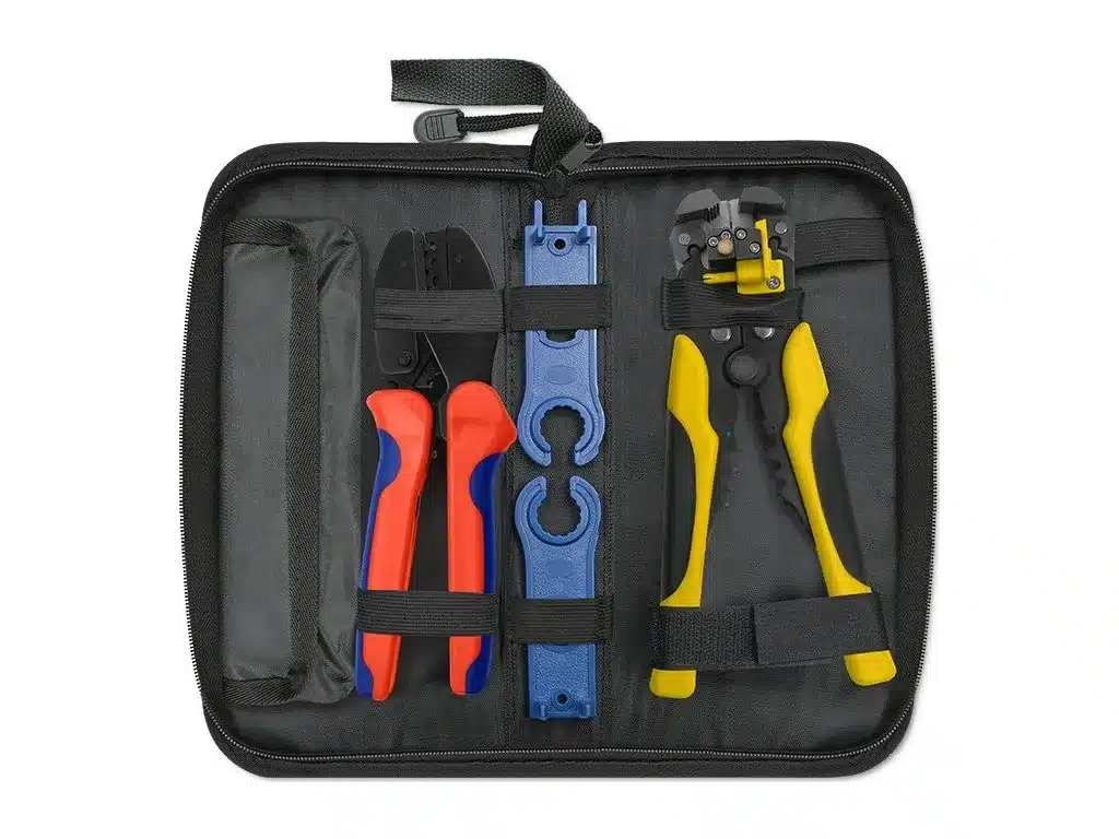 Súprava pevného solárneho náradia kompatibilného s konektormi MC4 aj kabelážou používanou vo fotovoltaike. Je navrhnutá tak, aby ste s ňou zvládli všetky bežné úkony pri realizácii FV systému – najmä montáž solárnych konektorov, prácu s káblami a osádzanie/spájanie konektorov.