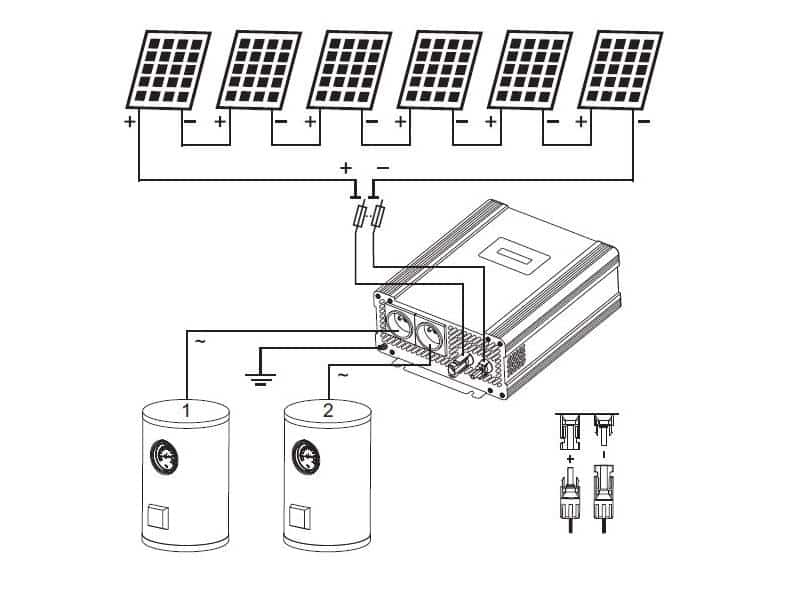 Systém je veľmi jednoduchý a vyžaduje len pripojenie príslušného počtu štandardných solárnych fotovoltaických panelov (4 až 9 ks podľa typu) a pripojený spotrebič elektrickej energie napr. bojler.
