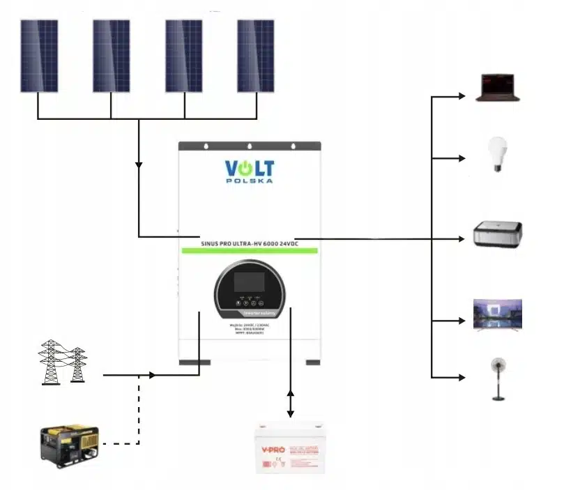 Objavte najmodernejší hybridný off-grid invertor SINUS PRO ULTRA-HV 6000 24/230V (3000/4000W) + 80A MPPT (450V) od spoločnosti Volt Polska. Tento invertor kombinuje funkcie invertora, solárnej nabíjačky a nabíjačky akumulátorov v jednom zariadení, čím zabezpečuje maximálnu efektivitu pre váš solárny systém.