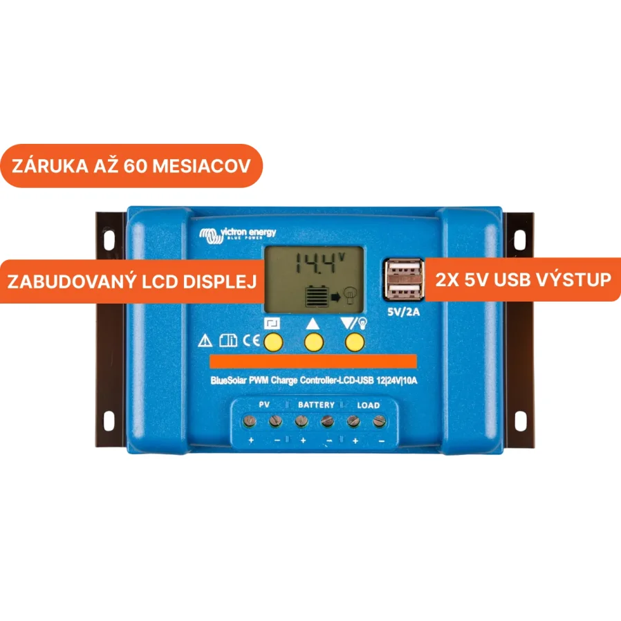 Victron Energy predstavuje nový PWM regulátor nabíjania, ktorý je vybavený LCD displejom a dvojicou USB portov. Produkt je nový a súčasťou je aj 5 ročná záruka.