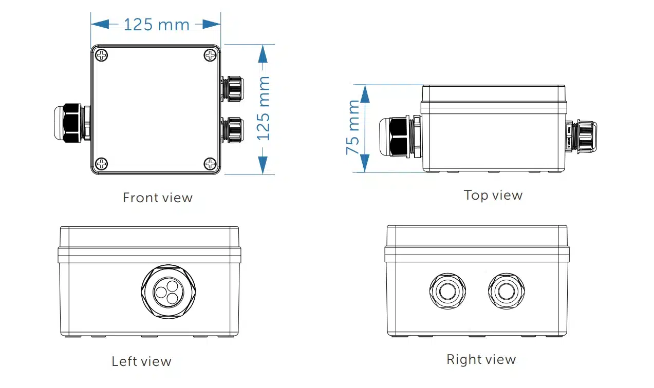 • Rozmery (D × Š × V): 125 × 125 × 75 mm
