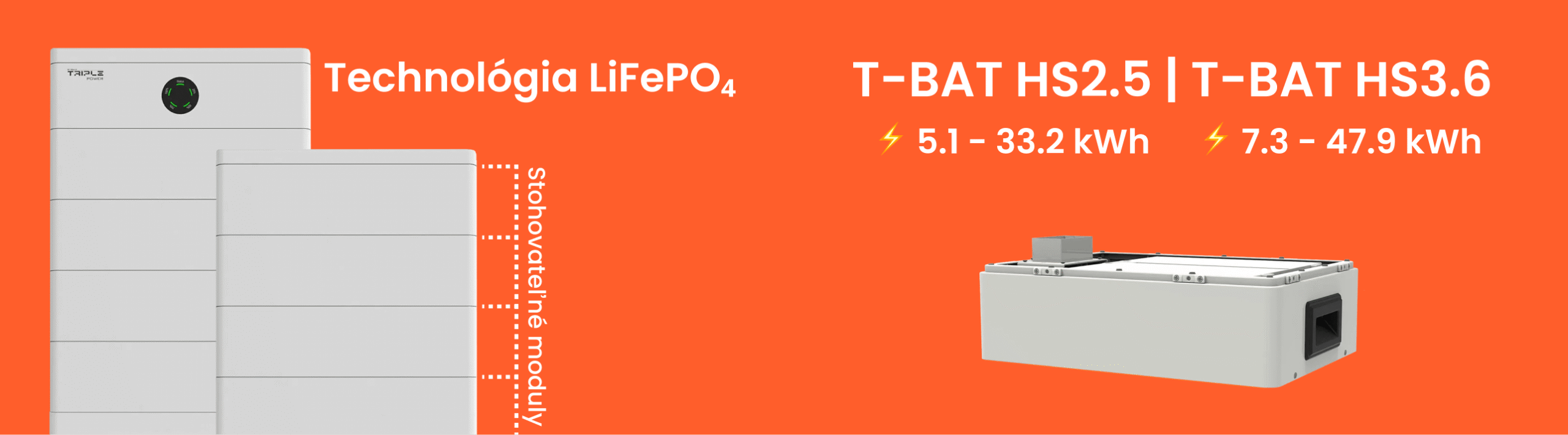 Stohovateľné batérie T-BAT-SYS-HV-S3.6 využívajú osvedčenú a bezpečnú technológiu LiFePO₄, umožňujú nabíjanie a vybíjanie prúdom až 50 A a ponúkajú ochranu IP65. Pre zapojenie prvej batériovej veže je potrebná riadiaca jednotka Triple MCS0800, na pripojenie druhej veže k prvej slúži T-BAT-SYS-HV Series Box.